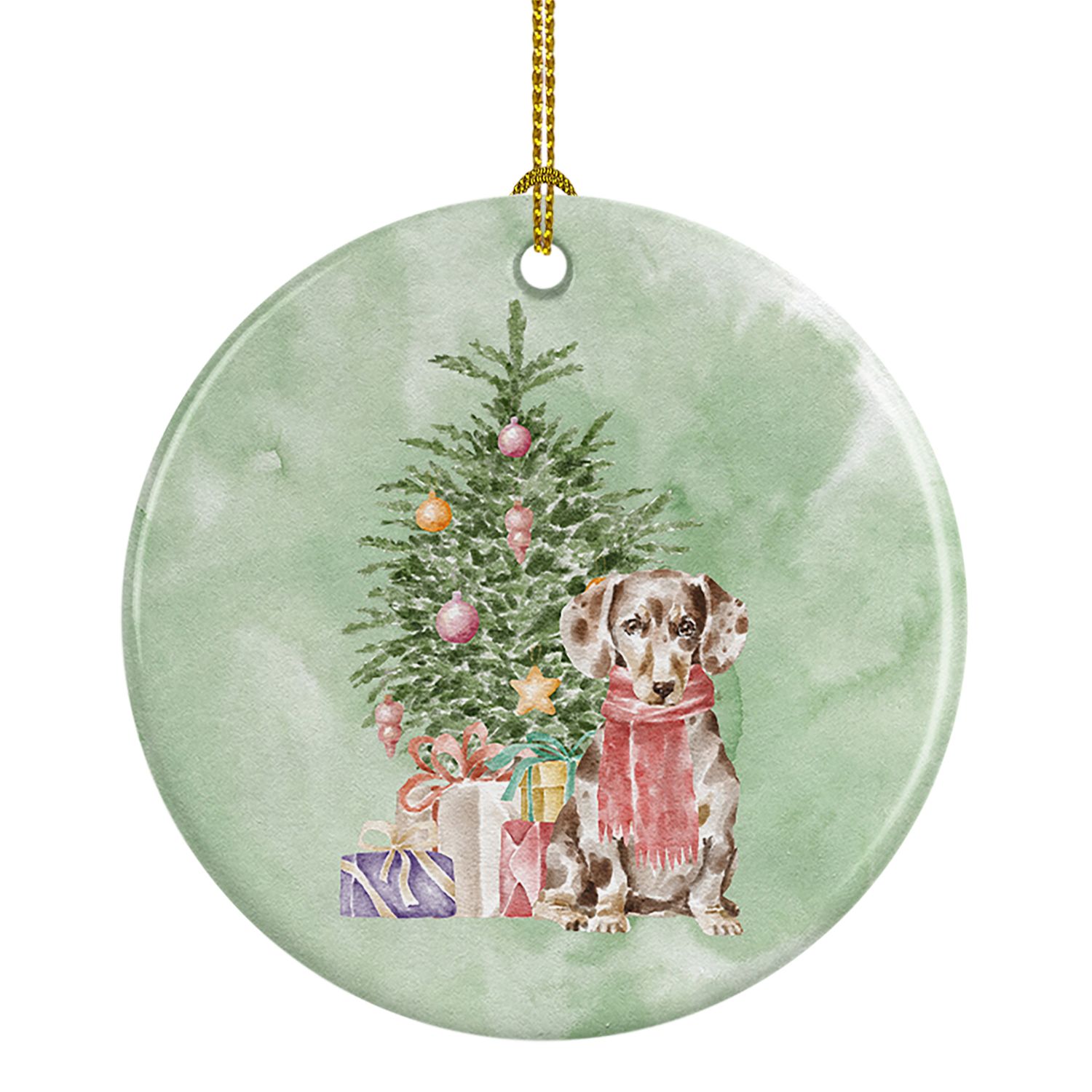 Ceramic Ornament featuring breed specific Dachshund artwork. Celebrate Christmas with this Christmas Ornament. This Ceramic Ornament is from Caroline's Treasures collection Christmas Presents and Tree. Add a touch of personalized charm to your Christmas tree this holiday season with our Ceramic Ornament. Measuring 2.8125 inches in diameter, this round porcelain ornament beautifully reflects your festive lights, enhancing your holiday decor. The gloss surface sets off the vibrant, full-color artwork contributed by one of our talented artists, bringing a pop of color and joy to your tree. This Ceramic Ornament doesn't stop at being merely decorative. The white back is designed for personalization. Write a heartfelt message, mark a special year, or inscribe a date with a paint pen or a permanent marker to create a treasured memento. Please ensure you allow any personalization to dry thoroughly before handling to maintain the pristine finish. Included with the ornament is a delicate gold cord for easy hanging. Made in the USA, this Ceramic Ornament makes an exceptional gift for a pet sitter, teacher, family member, or anyone you wish to share a little Christmas magic with. With its blend of style, charm, and personal touch, it's a meaningful addition to any Christmas tree. This Ornament is from Caroline's Treasures Dogs category of products.